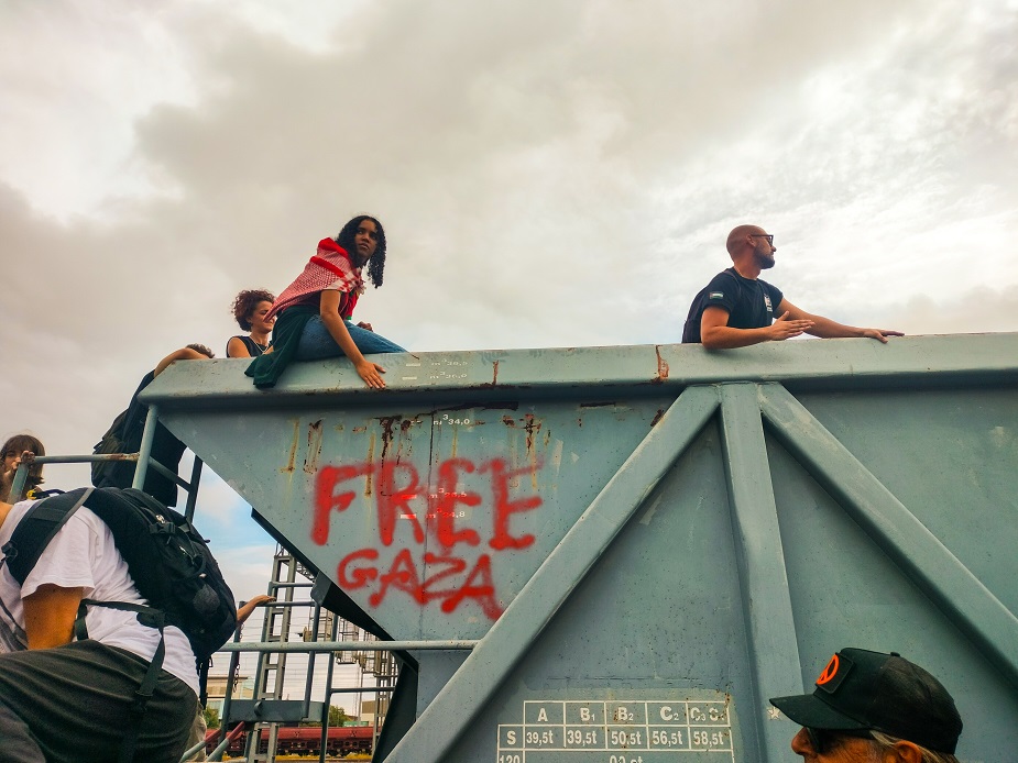 Cette action de blocage, réalisée dans plusieurs ports italiens, fait suite à l’appel des dockers de Gênes, afin d’agir directement contre la livraison d’armes transitant par la Méditerranée, depuis l’Italie donc en direction d’Israël.
